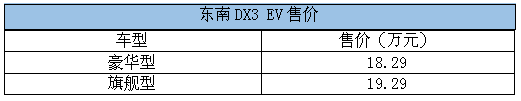 2018年3月28日東南汽車旗下小型純電動SUV——東南DX3 EV車型正式上市。新車共推出兩款車型,補貼前售價為18.29和19.29萬元。據(jù)悉,新車搭載了一塊43.1kWh的電池組,綜合工況下DX3 EV的續(xù)航里程為300km。