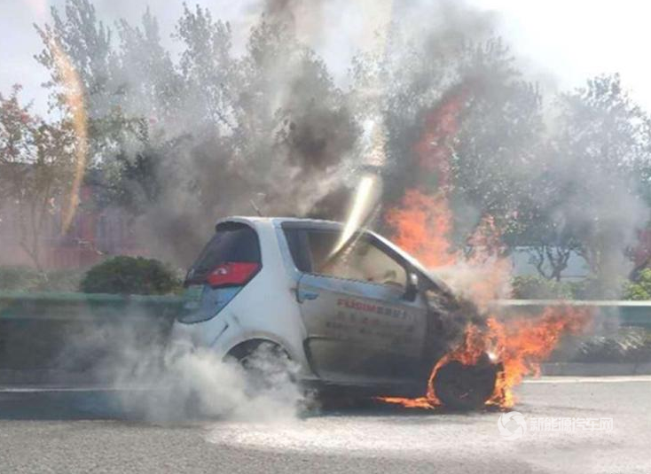 眾泰E200搭載容量為31.9kWh的三元鋰離子動力電池組,同時采用后置電機(jī)的布局。從照片來看,該車起火部位主要在前機(jī)艙下方,且車輛底盤后部有白煙冒出。最后直至事故車輛的車漆、玻璃、外部裝飾件已面目全非,其前機(jī)艙底部仍有明火。