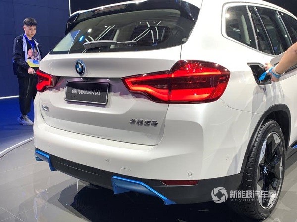 寶馬iX3雖然和X3有著相似的外觀和內(nèi)飾,但是在一些細(xì)節(jié)上加上藍(lán)色的點(diǎn)綴,以表明新能源汽車的身份。雙腎型的進(jìn)氣格柵雖然也加了藍(lán)色的裝飾,但細(xì)看進(jìn)氣格柵的部分,采取了半封閉的設(shè)計(jì),同時(shí)車尾下方也增肌了藍(lán)色的擾流板,用以提升車輛的性能,因此這些小改動(dòng)除了“表明身份”,也有其實(shí)際用途。