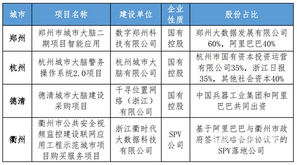部分城市在城市大腦項目建設(shè)中引入SPV(特殊項目公司)模式,由互聯(lián)網(wǎng)或科技企業(yè)與當(dāng)?shù)卣畱?zhàn)略合作,共同出資設(shè)立城市大腦建設(shè)運營平臺公司。由該公司作為項目建設(shè)的實施者和運營者具體負(fù)責(zé)項目的設(shè)計、投融資、建設(shè)、運營維護,該模式最大特點在于政府不對項目公司控股或具有實際控制力。
