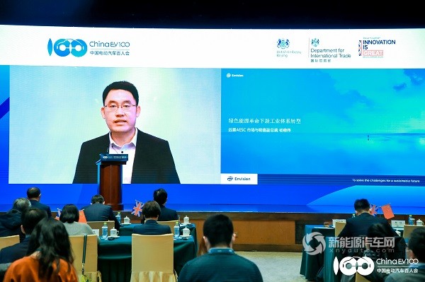 2021年1月15日,第五屆中英電動(dòng)汽車(chē)創(chuàng)新論壇的活動(dòng)現(xiàn)場(chǎng),遠(yuǎn)景AESC市場(chǎng)與銷(xiāo)售副總裁楊曉偉以視頻的方式發(fā)表了主題為綠色能源革命下新工業(yè)體系轉(zhuǎn)型的演講:
