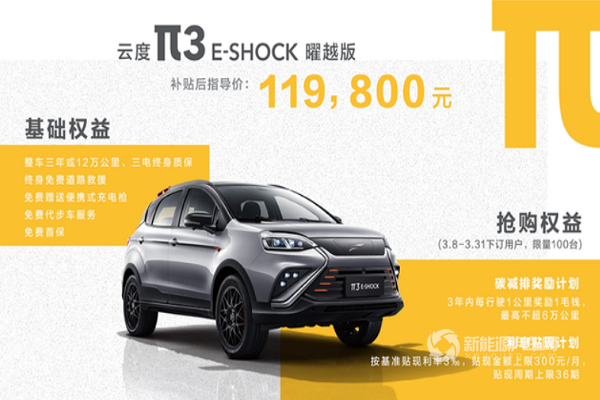 補(bǔ)貼后售價(jià)11.98萬(wàn)元 云度π3 E-Shock曜越版八省區(qū)域上市