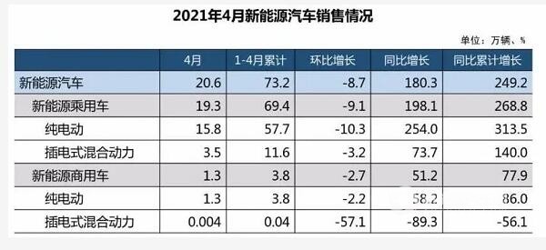 圖|2021年4月新能源汽車銷售情況*數(shù)據(jù)源自中國(guó)汽車工業(yè)協(xié)會(huì)