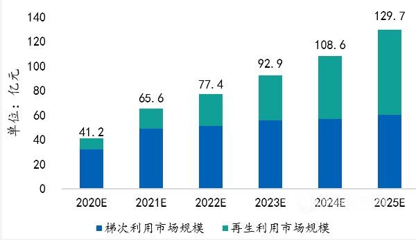 圖|2020-2025年我國(guó)梯次利用和再生利用市場(chǎng)規(guī)模預(yù)測(cè)