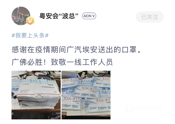 疫情仍在,我們絕不能掉以輕心,每個(gè)人都可以,也都應(yīng)該用自己的方式,為抗擊疫情貢獻(xiàn)一份力量,包括埃安。