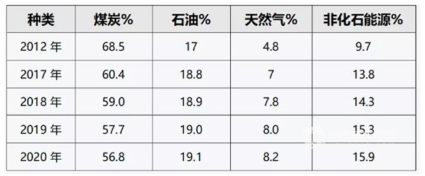 要在調(diào)整優(yōu)化能源結(jié)構(gòu)、產(chǎn)業(yè)結(jié)構(gòu)和產(chǎn)品結(jié)構(gòu)上下功夫。先說能源消費(fèi)結(jié)構(gòu)。下表列出了2012年-2020年我國能源消費(fèi)結(jié)構(gòu)的變化(折標(biāo)準(zhǔn)煤)。