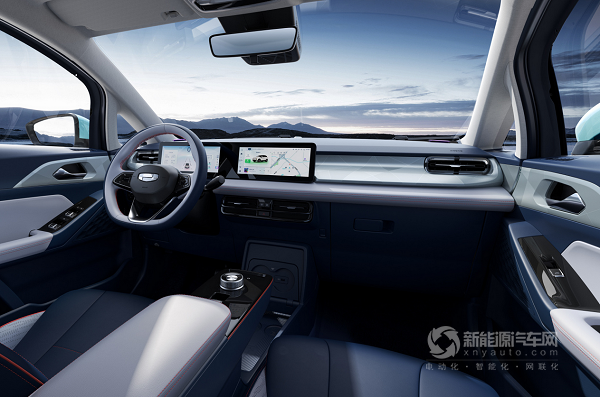 幾何E的設(shè)計(jì)風(fēng)格與幾何A、幾何C以及EX3都有所不同,其采用的雙10.25英寸的連屏也是第一次在幾何車(chē)型上出現(xiàn),同時(shí)內(nèi)置的系統(tǒng)也是進(jìn)行了更新,整個(gè)界面有點(diǎn)類(lèi)似于吉利銀河OS,但是還是有所不同的。