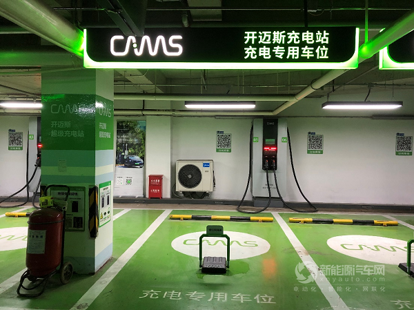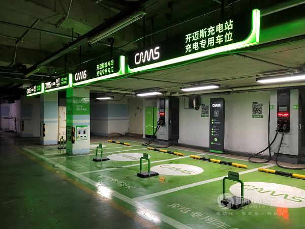 開邁斯充電站專用車位,6個快充樁一字排開。