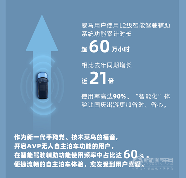 如今,智能駕駛越來越多地走入了大眾視野,這項(xiàng)曾經(jīng)的尖端科技正成為用戶“習(xí)以為常”的出行必備。報告顯示,今年“十一”期間,威馬用戶使用L2級智能駕駛輔助系統(tǒng)功能累計時長超60萬小時,使用率高達(dá)90%。其中,AVP無人自主泊車、車內(nèi)語音助手等智能體驗(yàn)成為了高頻使用功能。