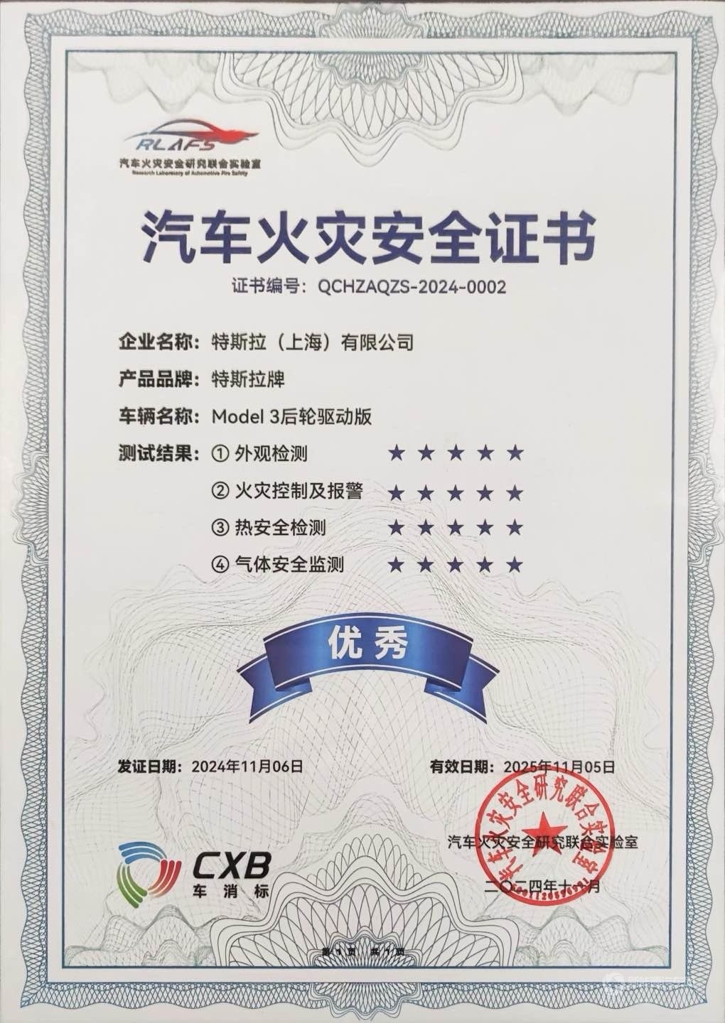 12月4日,特斯拉副總裁陶琳發(fā)文稱,Model3成為“中國(guó)電動(dòng)汽車火災(zāi)安全指數(shù)”和“汽車火災(zāi)安全認(rèn)證”雙五星的車型。