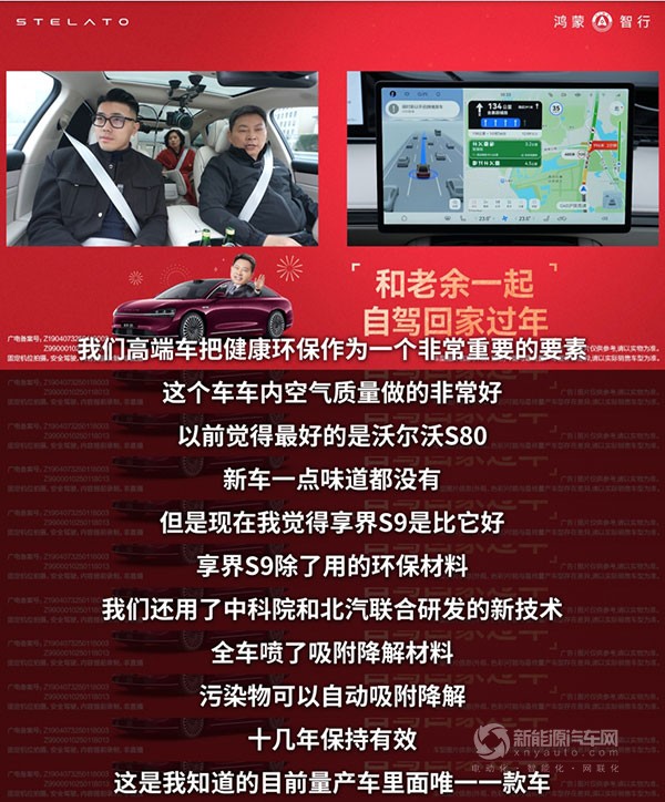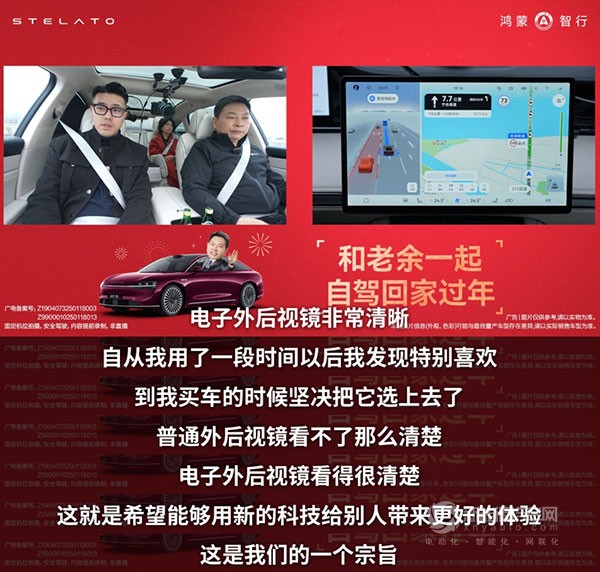 時近除夕,華為余承東也開啟了一場特別直播,直播自己開自費(fèi)購買的享界S9的回家路。這次回家路上,余承東還順路送史小諾和說車的小宇從南京到合肥,三人一路暢聊春節(jié)年貨年俗,新春氣氛拉滿!