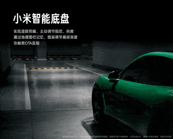 全系標配小米智能底盤,實現(xiàn)道路預(yù)瞄,主動調(diào)節(jié)阻尼、剛度,通過地理圍欄記憶,提前調(diào)節(jié)懸架高度,讓駕駛得心應(yīng)手。